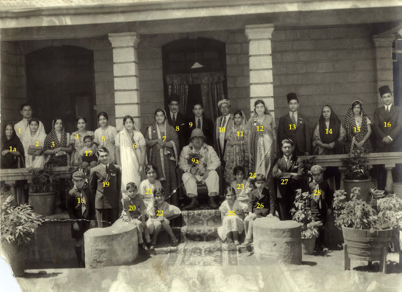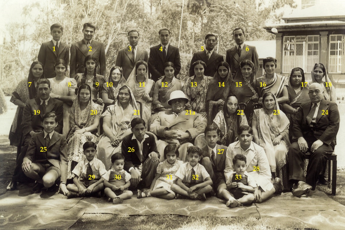 When every one was taking up their positions for the photographer, Jan could not find a place and started sobbing and going towards his mother (sitting on right hand side of Mawlana Sultan Mahomed Shah, see person numbered 16 in annotated photo). The Imam called Jan and asked him to sit on his lap (18 in annotated photo).