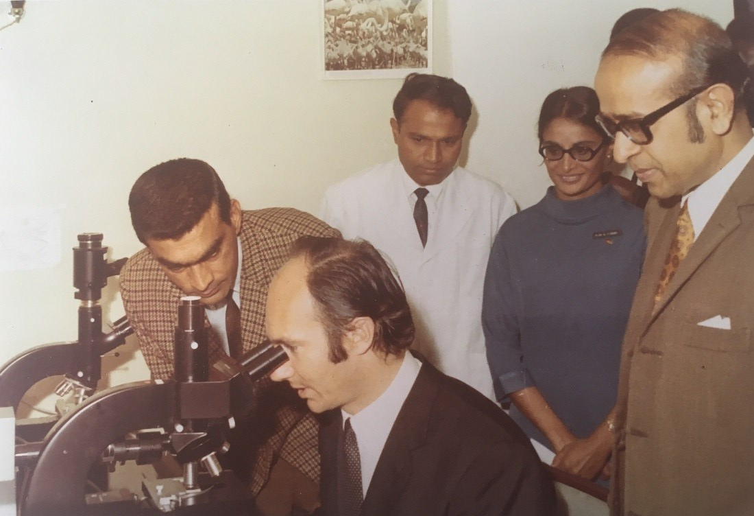Mawlana Hazar Imam looking through a microscope
