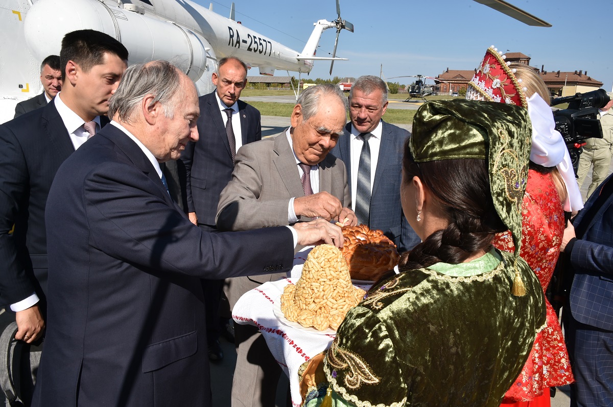 Hazar Imam was greeted at the airport by State Counsellor of Tatarstan Mintimer Shaimiev and Deputy Prime Minister of Tatarstan Shaikhraziev Vasil Gayazovich, who thanked Hazar Imam for visiting the region and wished him a bon voyage.