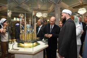 Later in the day, Hazar Imam visited the Bulgarian Civilisation Museum — which exhibits a number of artefacts detailing the development of religion in the area of Tatarstan — and the adjacent Qur’an Museum, the site of one of the largest copies of the Qur’an in the world. Weighing half a ton and measuring over 2 metres tall, its cover is made of fabric with patterned decoration in silver and gold.
