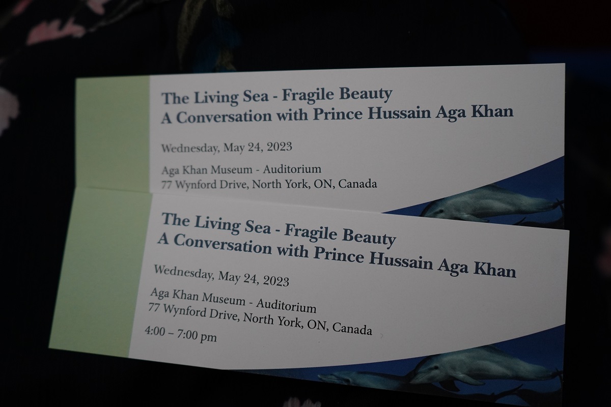 Prince Hussain Aga Khan made two presentations of his exhibition The Living Sea — Fragile Beauty at the Aga Khan Museum in Toronto on Monday May 22 and Wednesday May 24, 2023, that included lively and informative chats with Chief News Anchor and Senior Editor of CTV National News, Omar Sachedina (May 23) and award-winning journalist and anchor of Global National, Farah Nasser (May 25). At all events, Prince Hussain was accompanied by his wife Princess Fareen Aga Khan.