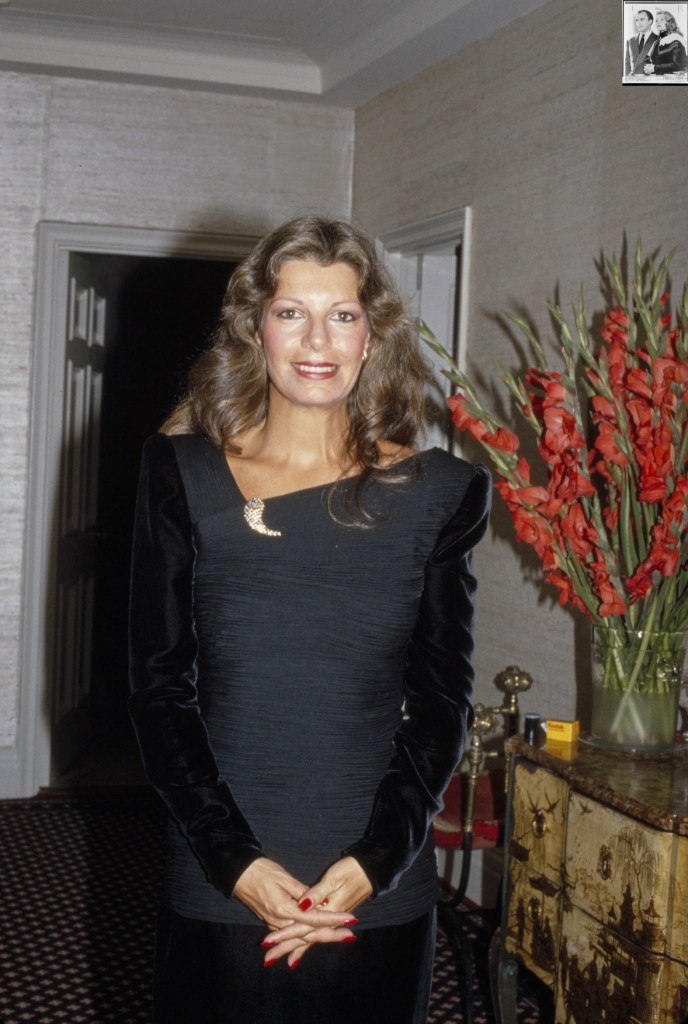 Princess Yasmin Aga Khan, daughter of Prince Aly Khan and Ms. Rita Hayworth, and younger sister of Mawlana Hazar Imam, His Highness the Aga Khan and Prince Amyn Mohamed pictured at the first Alzheimer’s fundraiser in New York in December 1984. Photo: Bernard Gotfryd via Library of Congress. Inset photo (top right). A half-length portrait of Princess Yasmin’s parents Prince Aly Khan and Ms. Rita Hayworth dated May 27, 1949.
