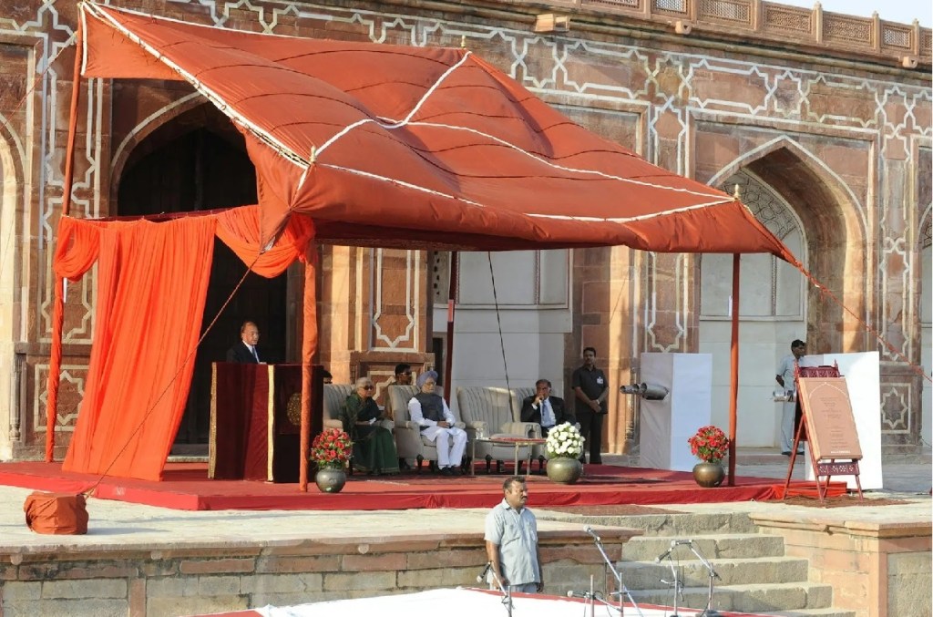 “It gives me great joy to be here this evening in a spot that is replete with the grandeur of nearly five hundred years of Indian history. The famous architect, Frank Gehry, once said: “In the end, the character of a civilization is encased in its structures.” This complex is an important marker of our civilization and it is, therefore, a privilege for me to join you at this ceremony marking the completion of almost seven years of painstaking restoration work by the Aga Khan Trust for Culture, in partnership with the Archaeological Survey of India, and with the support of the Sir Dorabji Tata Trust.