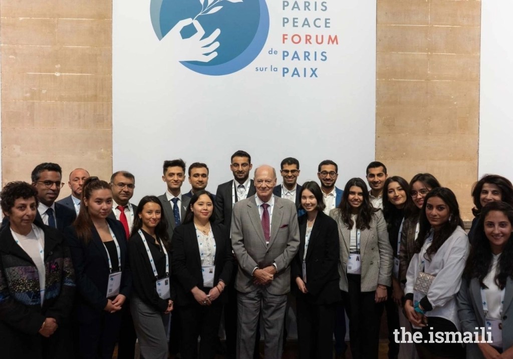 Prince Amyn Aga Khan with Ismaili institutional leaders and volunteers at the Paris Peace Forum on November 11, 2024. Photograph: AKDN Photo: AKDN