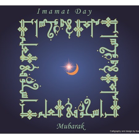 Imamat Day Mubarak Artwork with a Qur’anic Phrase Beautifully Rendered in Fatimid Kufi and Thuluth Scripts