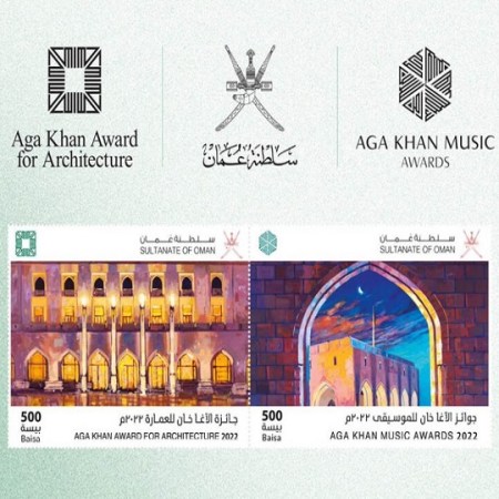 Prince Amyn Aga Khan Signs Special Stamps Launched by the Sultanate of Oman to Commemorate the 2022 Aga Khan Award for Architecture and the Aga Khan Music Awards