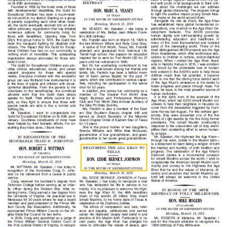 April 18, 2018December 13, 2025 Malik Merchant, Editor Congressional remarks on His Highness the Aga Khan in recognition of his life of services to humanity